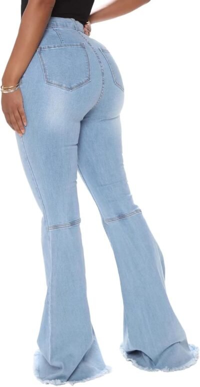 Women’s Bell Bottom Jeans Ripped Distressed Frayed Raw Hem Elastic Flared Jean