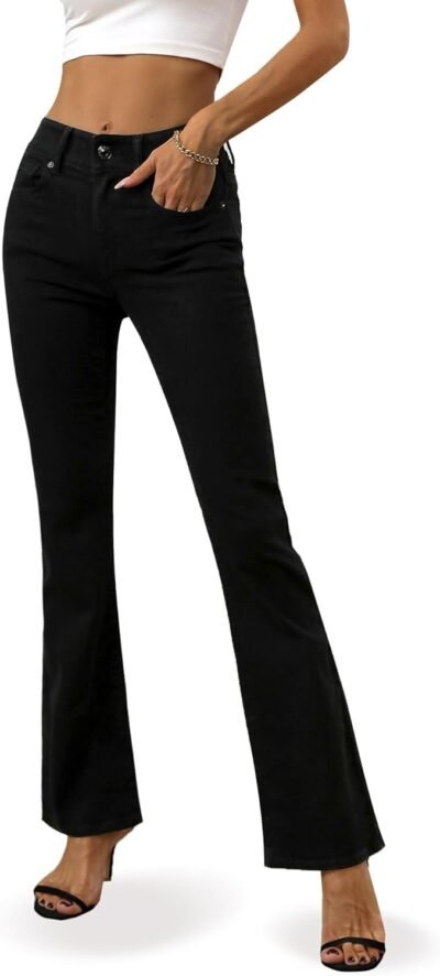 - Classic high waisted flare jeans: These women’s jeans are made of high quality denim, high quality stretch denim is soft and comfortable to wear.